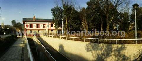 Zarauzko Nafarroa kaletik pasatzen den N-634 errepidearen azpiko pasabideetako baten bista panoramikoa; atzean, Santillana Jauregiko kotxetegien eraikina ikus daiteke, Gurutze Gorriaren egungo egoitza.