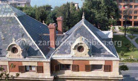 Sanz Enea Teilatuaren egoera birmoldaketa-lanak hasi aurretik. Eraikina XIX. mendeko bigarren hiruhilekoaren amaieran eraiki zuten, eta, egun, Zarauzko Kultura Zuzendaritza eta udal-liburutegia daude bertan.