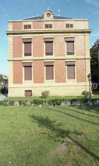 Zarauzko Sanz Enea Jauregiko fatxada , inguruko lorategietatik begiratuta. Eraikina XIX. mendeko bigarren hiruhilekoaren amaieran eraiki zuten, eta, egun, Zarauzko Kultura Zuzendaritza eta udal-liburutegia daude bertan.