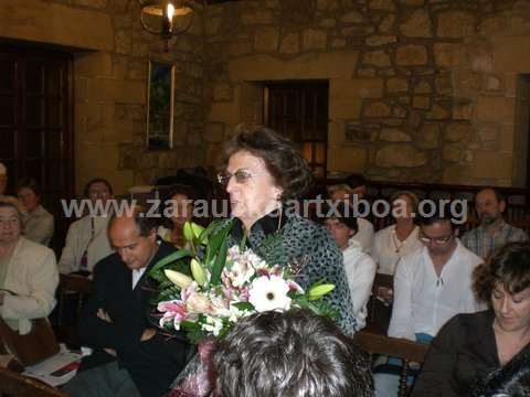 Gregoria Eizagirre, Escudero maisuaren alarguna, Zarauzko Udaleko udalbatzan Hauspoz elkarteak antolaturik (Euskal-Herriko Akordeoi Elkartea) eta Zarauzko Udalak, Gipuzkoako Foru Aldundiak eta Autore eta Argitaratzailen Elkarte Nagusiak (AAEN) lagunduta ospatutako I Francisco Escudero Konpozizio Lehiaketaren aurkezpenean lore sorta bat jaso ondoren.