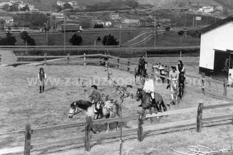 Zaldiketa Hainbat pertsona zaldiketa-eskolak hartzen Zarauzko “Zaldi Toki”n.