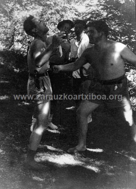 BUSCADOR Todos los departamentos Fotográfico municipal Patrimonio artístico Prensa histórica ARCHIVO: Busqueda avanzada Volver a resultados de busqueda Archivo 7 de 159 Primero Anterior Siguiente Último Archivo Solicitar imagen de alta calidad Tipología y Conservacion Comentar la imagen Ref. 005048 Signatura 31 Irrintzi. Celebraciones Miembros de Irrintzi Elkartea, durante la celebración de uno de los actos culturales teatrales organizados por la asociación. Autor: Anonimoa / Anónimo Archivo: Fotográfico municipal Fecha (año/ mes / día): 1959 Materia: Actos culturales Área geográfica: Euskal Herria Territorio: Gipuzkoa Localidad: Zarautz Barrio: Procedencia: Fondo Irrintzi Elkartea Forma de ingreso: Cesión Situación Jurídica: Medidas: 20x27 Positivo / Negativo: Positivo Soporte: Papel B/N - Color: B/N Estado de conservación: Bueno Observaciones: Keywords: teatroactoresmonteIrrintzi1959antzerkiaaktoreakmonteIrrintzi1959 Volver a resultados de busqueda Archivo 7 de 159 Primero Anterior Siguiente Último
