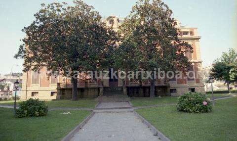 Zarauzko Sanz Enea Jauregiko fatxada nagusia, inguruko lorategietatik begiratuta. Eraikina XIX. mendeko bigarren hiruhilekoaren amaieran eraiki zuten, eta, egun, Zarauzko Kultura Zuzendaritza eta udal-liburutegia daude bertan.